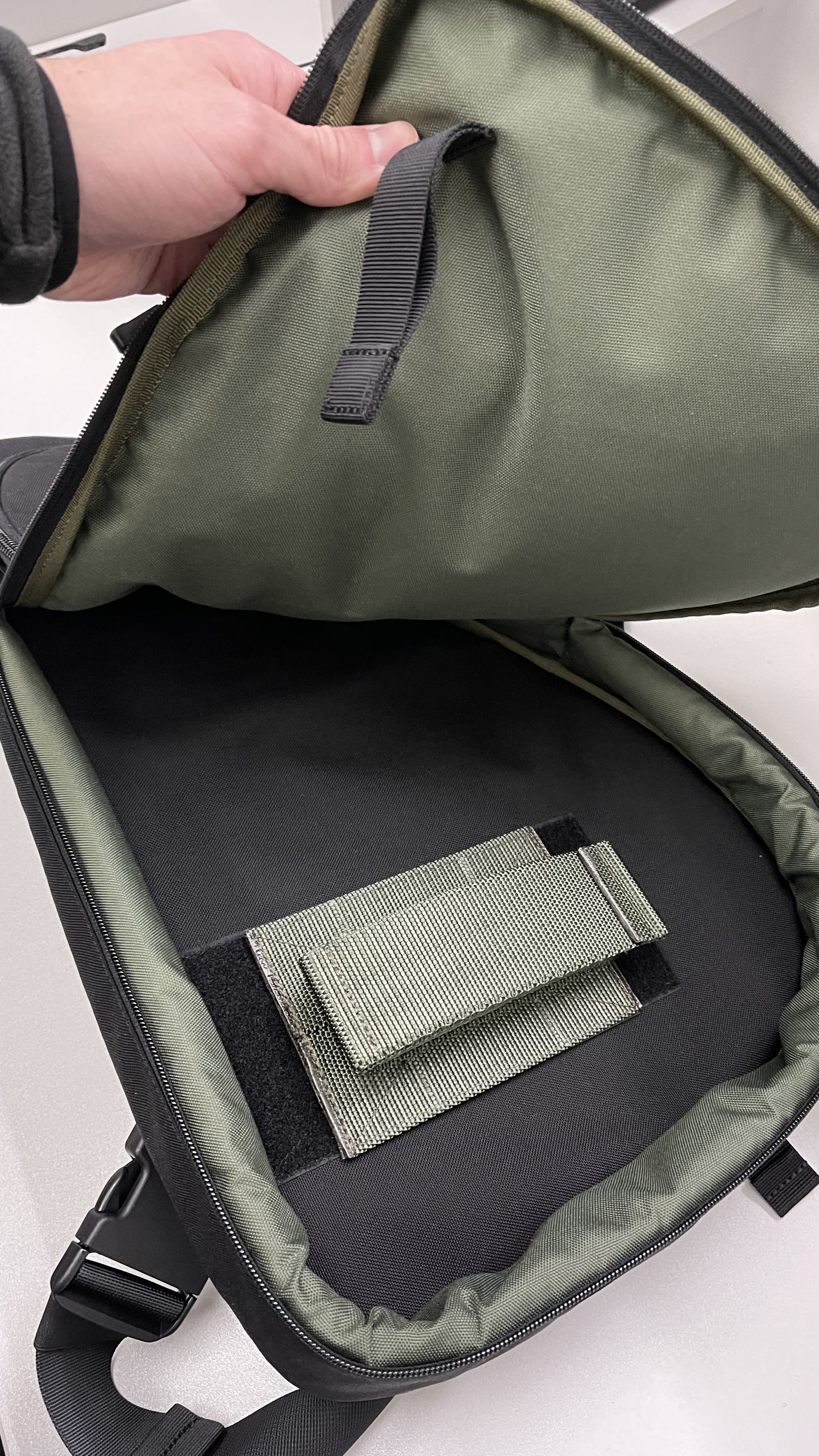 Чохол має три відділення, кожне з яких відповідає конкретній функції. Перше відділення розроблено для зброї та використовує внутрішню Velcro-панель для надійної фіксації. Друге відділення призначене для трьох додаткових магазинів, що забезпечує додатковий боєприпас. Третє відділення - це фронтальна кишеня, ідеальна для аксесуарів чи документів.
